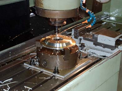 これはローターの中心部、ハットを加工しているところです。