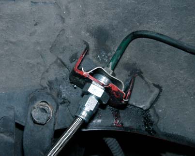 ブレーキホースはアールズのステンメッシュを使っていて、純正クリップを使用し固定します。