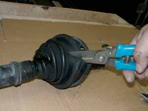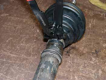 次にブーツバンドを巻きシャフトブーツプライヤーでバンドを締め込みます。