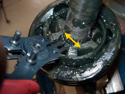 アウターメンバー(ハブに接続されるベアリング)をシャフトから抜きます。
