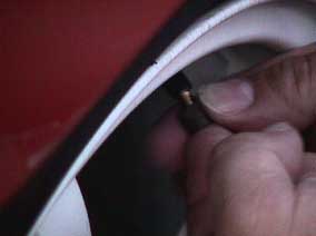 次に、入れたガスをタイヤから抜いて、すぐに虫ゴムを取り付けます。