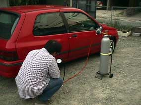 車で40〜50分位行った所には有ったのですが、窒素は溶接材料屋で売っていると聞き早速タウンページで溶接材料屋を探し、有無を言わず取り寄せてもらい、買っちゃいました。(ばか)