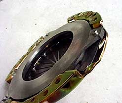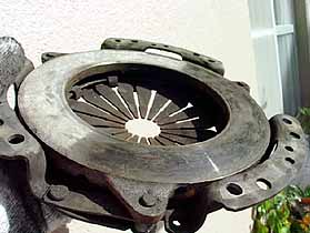 クラッチを踏むとレリーズベアリングが動いてダイアフラムスプリングを押さえ、クラッチが切れるわけです。(ややこしいので詳しい説明は省きます)ダイアフラムスプリングの裏にあるプレッシャープレートです。