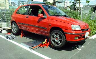 まず車を持ち上げて、安全の為に馬を入れます。