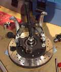 ここで問題発生、写真のようにプーラーを掛けベアリング内周にはまっているハブフランジは固いながらもなんとか抜けたのですが、肝心のベアリングが各種ハンマーで叩いても、プーラーを掛けても抜けません。
