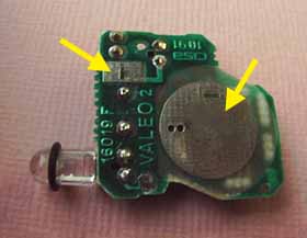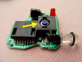 スイッチ(矢印)は小型のタクトスイッチです。