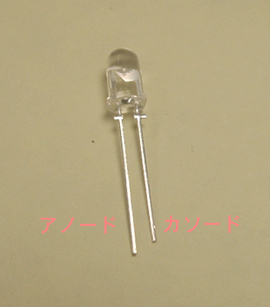 左の写真はノーマルのLEDで、右の足がカソードです。