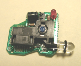 矢印の発光部が送信部のLEDで、これを輝度の高いものに交換してみます。