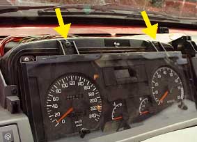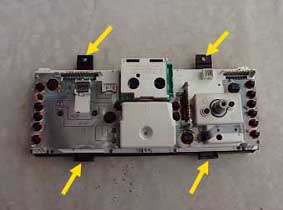 参考までに、メーターユニットは矢印の4ヵ所で固定されています。
