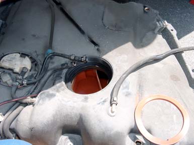 ポンプを外すとタンクの中が見え、まだ少しガソリンが残っていました。