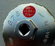 ルノーのオイルエレメントは国産車などでよくある多角形の頭をしていないため、汎用品で合う物は無く、専用のカップレンチが必要です。
