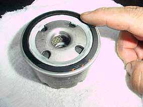 新しいエレメントのゴムパッキンには必ずエンジンオイルを塗っておきます。オイルは新品でも古いものでもOKです。組み込む際はエレメントを素手で締めるだけにします、レンチなどで締めてしまうと次回外れなくなってしまう可能性があります。