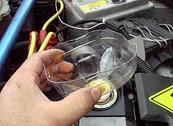 次にオイルエレメントを交換します。 クリオの16Vはエンジンルームが狭く、エレメントがある位置には腕が一本やっと入るようなところで、よくカーショップで等で売っているようなエレメントを外す工具が入りません。