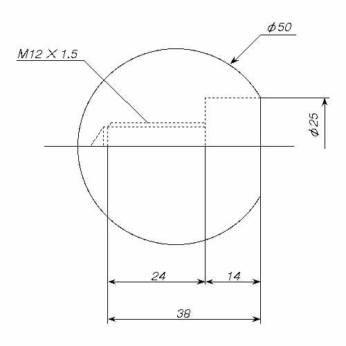 (クリックすると拡大します)切ったネジですが手持ちのダイスの関係でM12の1.5mmピッチ(細目)にしましたが、ホームセンターなどで手に入り易い1.75mmピッチ(並目)でも良いと思いますし、M12の1.25ピッチにすれば国産車用シフトノブでも取り付け可能になります。