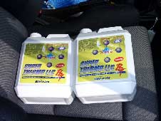 オーバーヒートになるといけないので近くにあったスーパーマーケットで水を買ってきてリザーバータンクに注入。