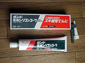 接着剤は分厚く塗っても大丈夫なものが必要なのですが、なかなか安価で良いものがなかったので今回は接着力が強めのコーキング剤を用いました。