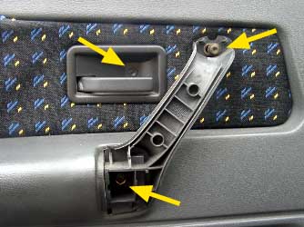 取っ手はトルクスねじ2本(T-30)で留まっているのでねじを外せば取り外せます。